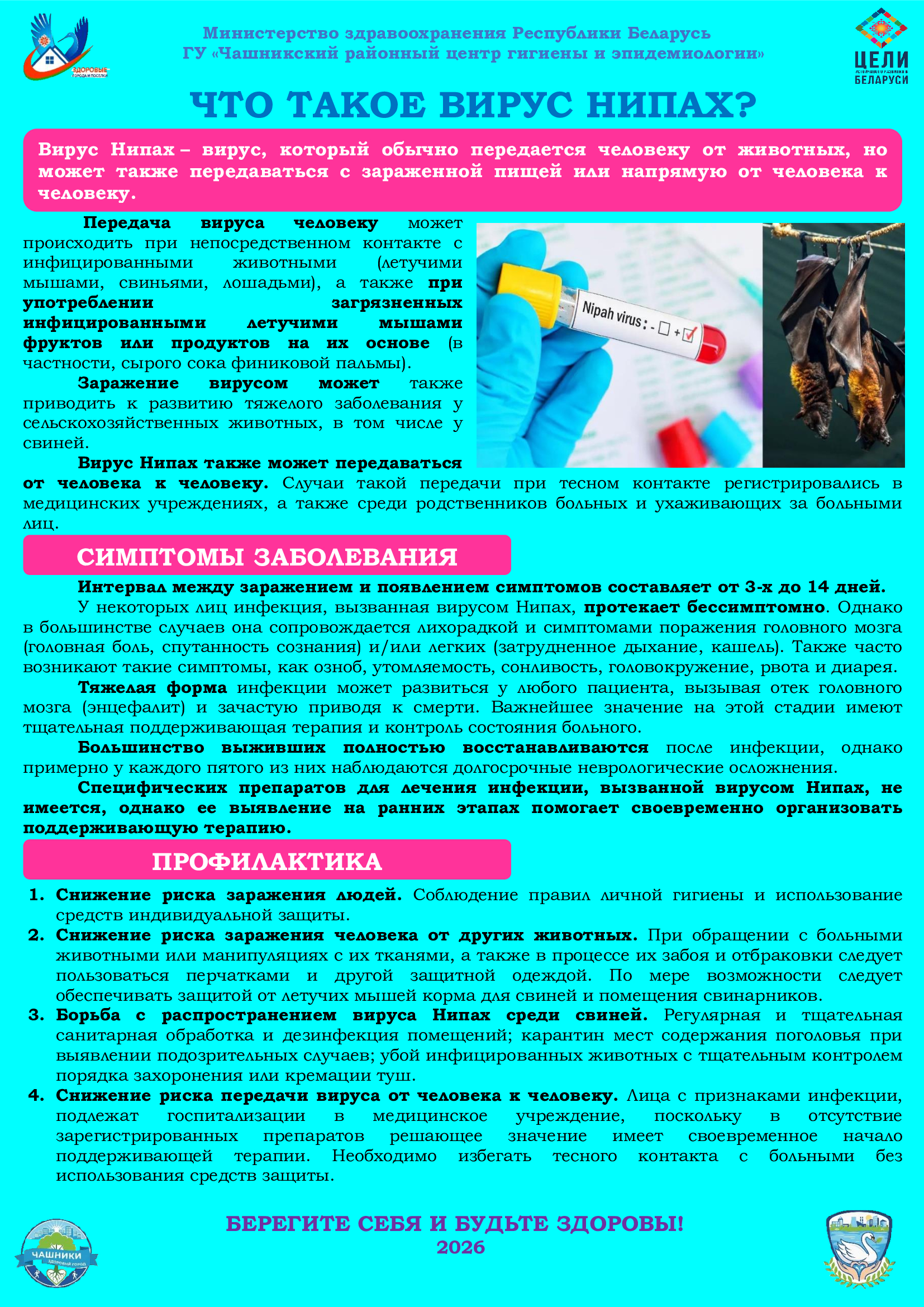 В целях обеспечения непрерывности лечебного процесса, доступности оказания медицинской помощи населению Чашникского района, работа в апреле-мае 2026 г. будет осуществляться по следующему графику: 20 апреля 2026 г. по графику ...