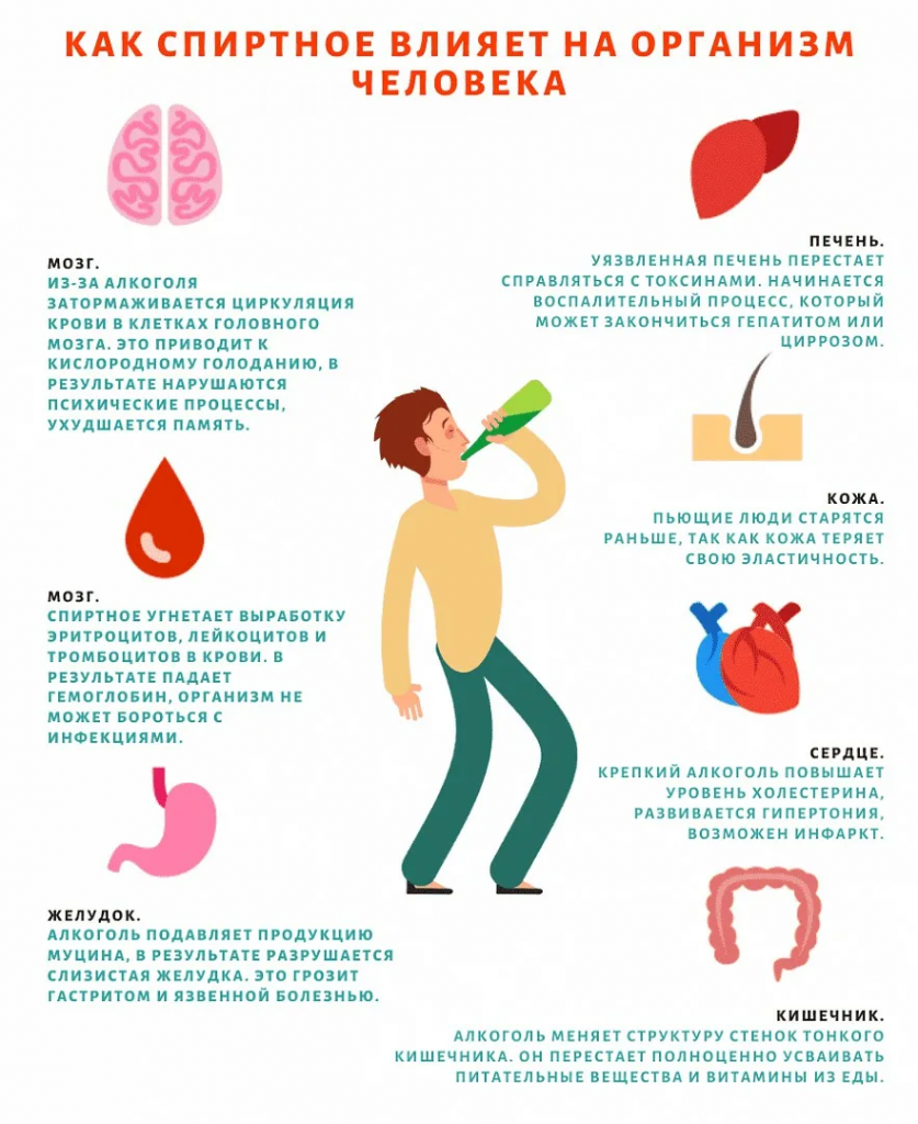 Факт № 13. Пагубное воздействие на ЖКТ. Спирт отрицательно влияет на тонкий кишечник. Он изменяет структуру клеток, и все полезные вещества перестают нормально усваиваться. Также горячительные напитки отрицательно сказываются на желудке. Происходит поражение слизистой оболочки, отмирание клеток эпителия, нарушается выделение желудочного сока. В связи с этим алкоголь может вызвать такие болезни, как: гастрит, панкреатит, различные виды язв, сахарный диабет.